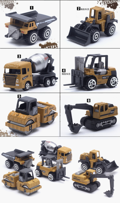 6 mini veículos de engenharia em liga metálica