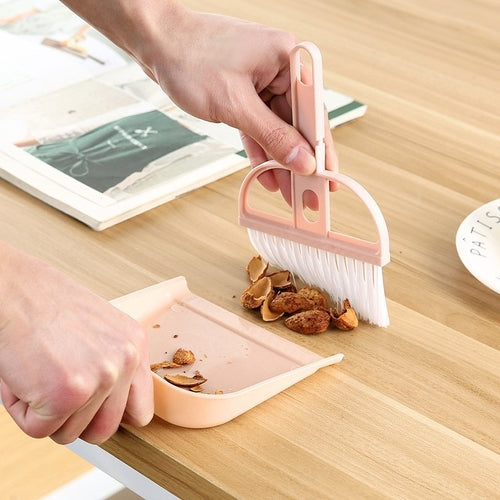 Multifunções: escova de limpeza de secretária, mini vassoura e pá.